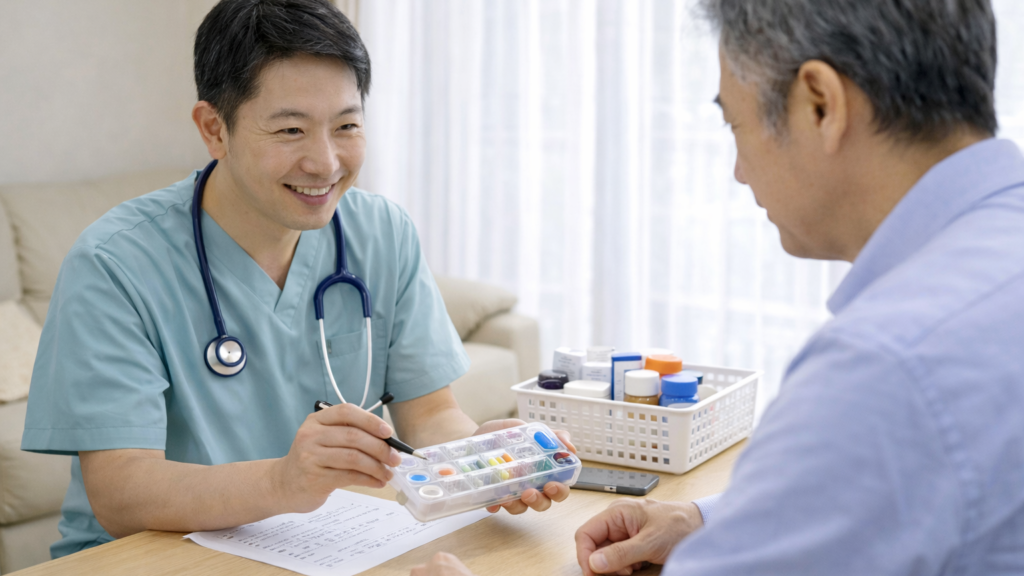 複数の病院や診療科を受診している場合でも、処方されたお薬や市販薬、サプリメントなどをまとめて確認し、飲み合わせや重複がないかをチェックします。